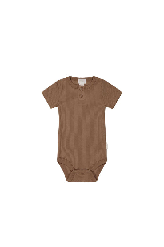 Organic Cotton Modal Darcy Rib Tee Bodysuit - Hojicha