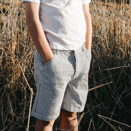 Boys Dress Shorts Navy Pinstripe