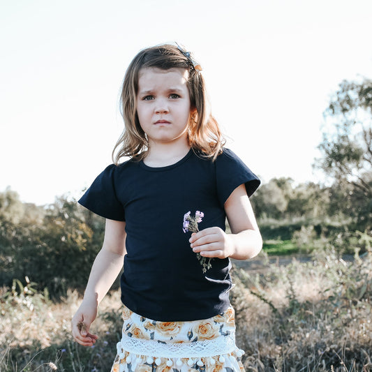 Girls Frill Sleeve Top Navy