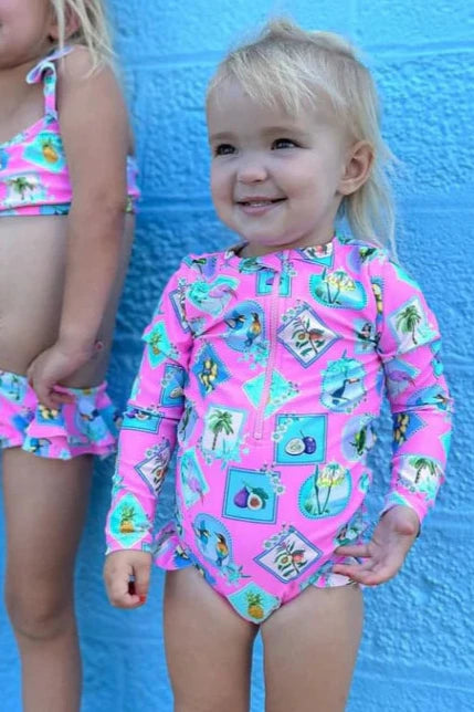 Pink Resort Long Sleeve Swimsuit