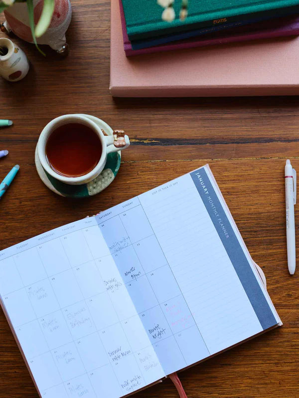Wrapped in premium linen with luxe gold-embossed titles and filled with beautiful FSC 80GSM paper, it’s the kind of planner that makes getting organised feel like self-care.