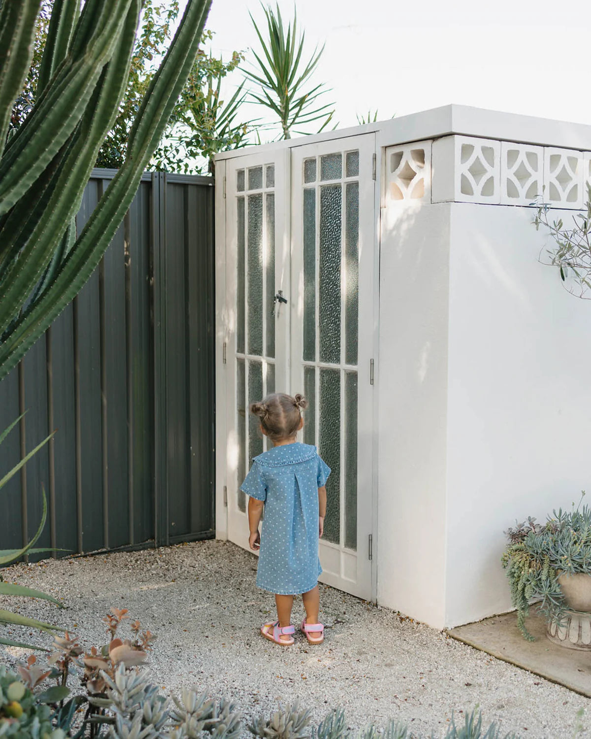 All heart eyes for this one! The Amour Dress in Denim Hearts is a modern classic with a vintage twist. Made from soft, lightweight denim with an all-over heart print, it features a statement frill collar, heart-shaped chest pockets, and easy snap buttons down the front. A charming go-to for picnics, parties, and everyday twirls.