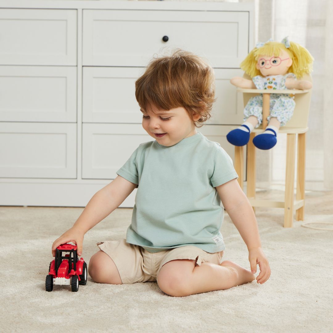 The Jiggle & Giggle Bioplastic Farm Tractor – 3 Asst Colours brings classic farmyard fun with an eco-friendly twist. Made from sustainable wheat straw bioplastic and packaged in recycled and recyclable materials, it’s a planet-friendly choice designed for durability and imaginative play. Available in three vibrant colours, this sturdy tractor helps little ones build motor skills and creativity while supporting a more sustainable future.