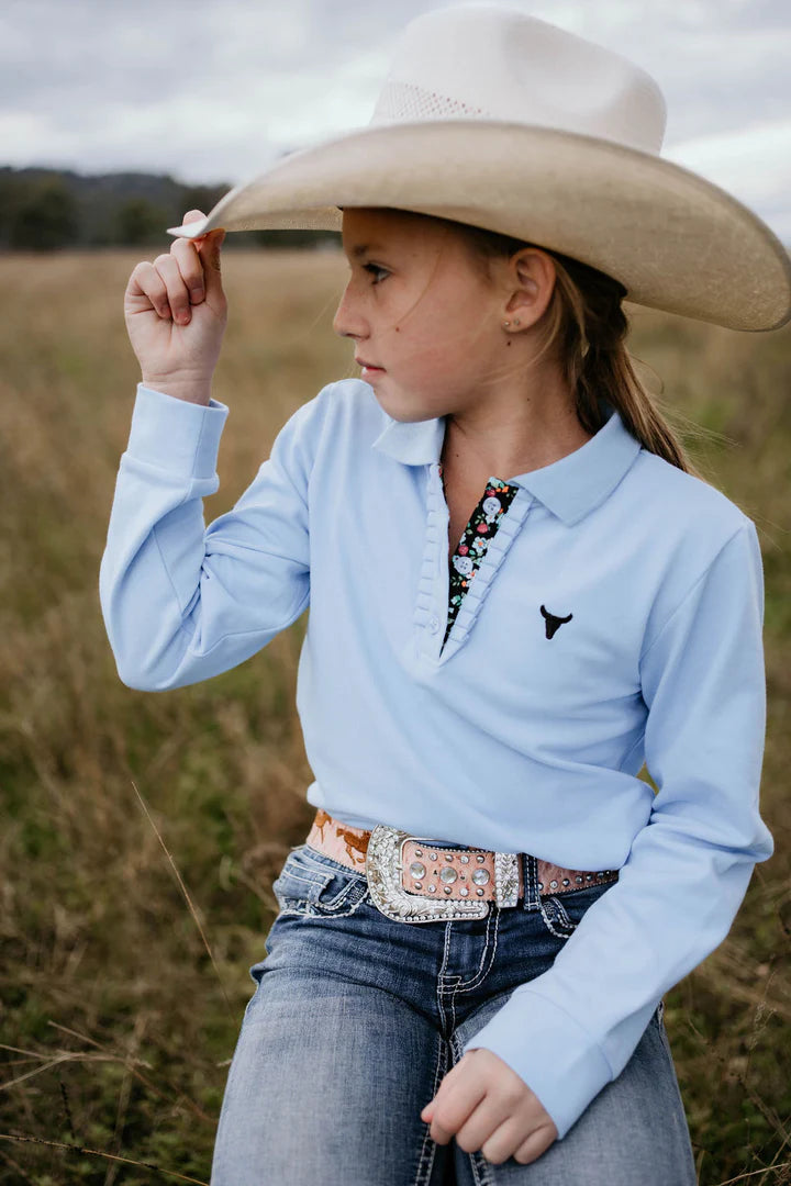 Little Windmill Clothing's Winter style of what a polo should be! This is a unique polo, that has been designed for tough wear, comfort, and style. Our polos are standouts with their beautiful colour range, contrasting ruffle collar and buttons.