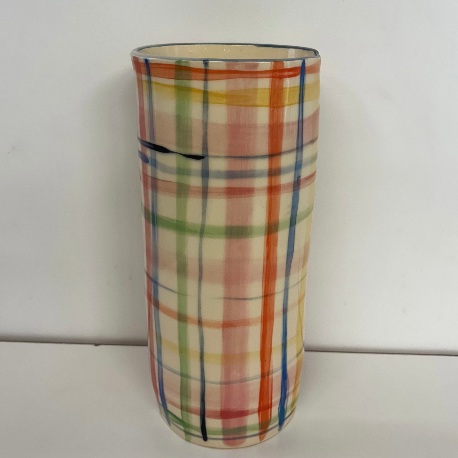 Extra Large Vase Multicolour Checks 27cm