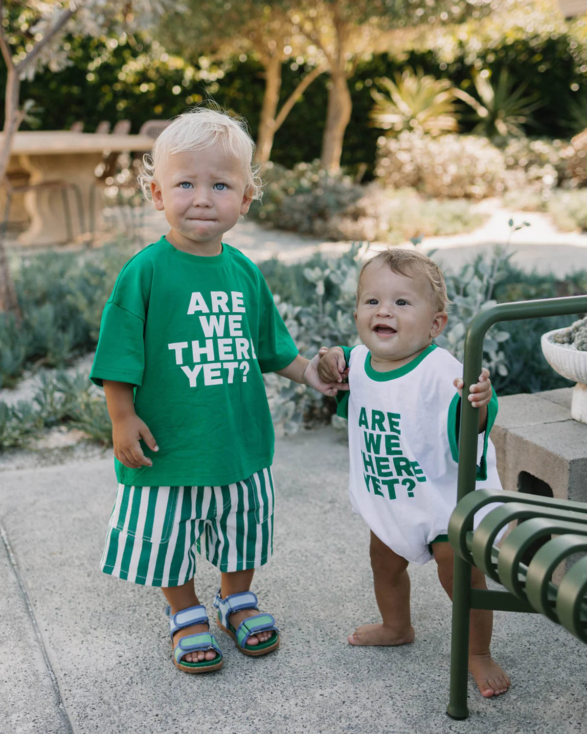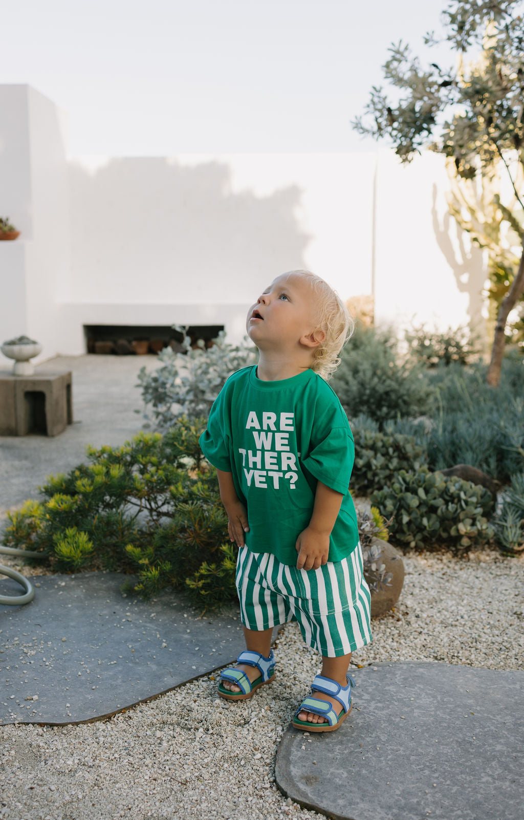 Easy, breezy and built for everyday adventures, the Remy Short in Green Stripe is a fresh take on a summer staple. Featuring bold vertical stripes in a punchy green and crisp white, these cotton shorts are designed with handy patch pockets and an elastic waistband for a comfy, fuss-free fit. Perfect for playful days in the sun!