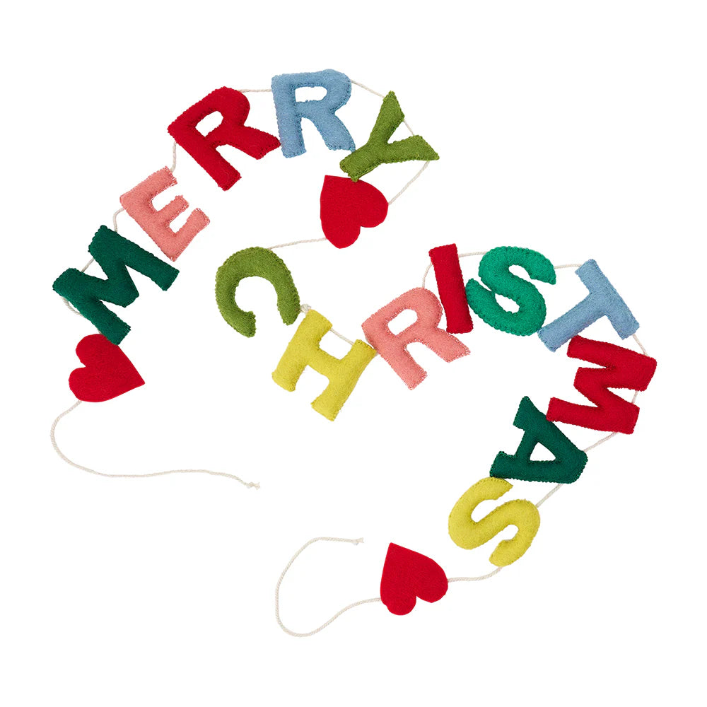 Add a touch of holiday cheer to any room with Annabel Trends Christmas Felt Bunting! This festive string of Felt letters spelling out Merry Christmas is a must-have for your festive decor. Easy to hang and a convenient 2 meter length. Handcrafted in Nepal using New Zealand wool. It's ho ho ho time! Size: String length 2 meters. Lettering length: 170cm. Letter size: average approx. Box Size: 7cm x 7cm.