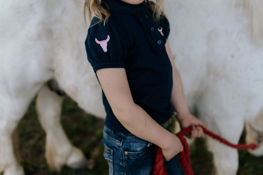 Little Windmill Clothing's style of what a polo should be! This is a unique polo, that has been designed for tough wear, comfort, and style. Our polos are standouts with their beautiful colour range, contrasting ruffle collar and buttons.