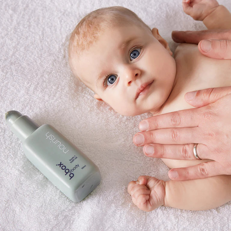 A lightweight bath + body oil made from natural ingredients to gently moisturise and to help leave dry or irritated skin feeling deeply hydrated and smelling beautiful. nourish is free of nasties safe for baby from birth and nourishing for all ages and skin types. This aromatic oil is formulated with jojoba oil, non-greasy to simulate the body's natural oils and known to offer antibacterial attributes to help replenish the skin's natural moisture barrier. Boosted with anti-inflammatory properties of Kakadu plum, and infused with aromatic mandarin and Roman chamomile to help improve hydration for sensitive skin prone to dryness or irritation.