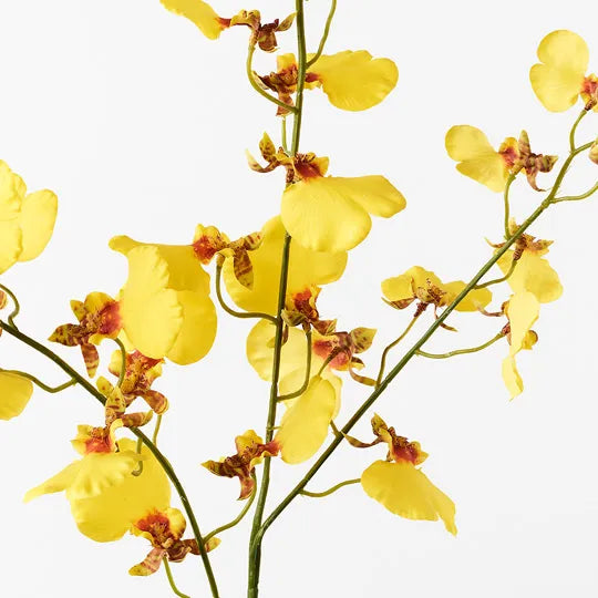 Brighten up your interior space with this stunning artificial orchid dancing stem in yellow, made from the finest materials it is amazingly realistic. Style this faux orchid dancing simply in a beautiful bunch on their own or create an arrangement from Floral Interiors huge variety of artificial flowers for impact. With minimal maintenance this faux stem can offer enduring beauty, keep out of direct sunlight.