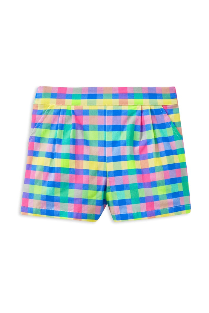 Milky Clothing Picnic Check Short. Bright, playful, and made for movement, the Picnic Check Short is a must-have for sunny day adventures. Featuring a colourful all-over check print and a comfy elastic back waistband, these shorts are easy to pull on and perfect for play. Style them with a simple tee for an easy head-to-toe summer look.