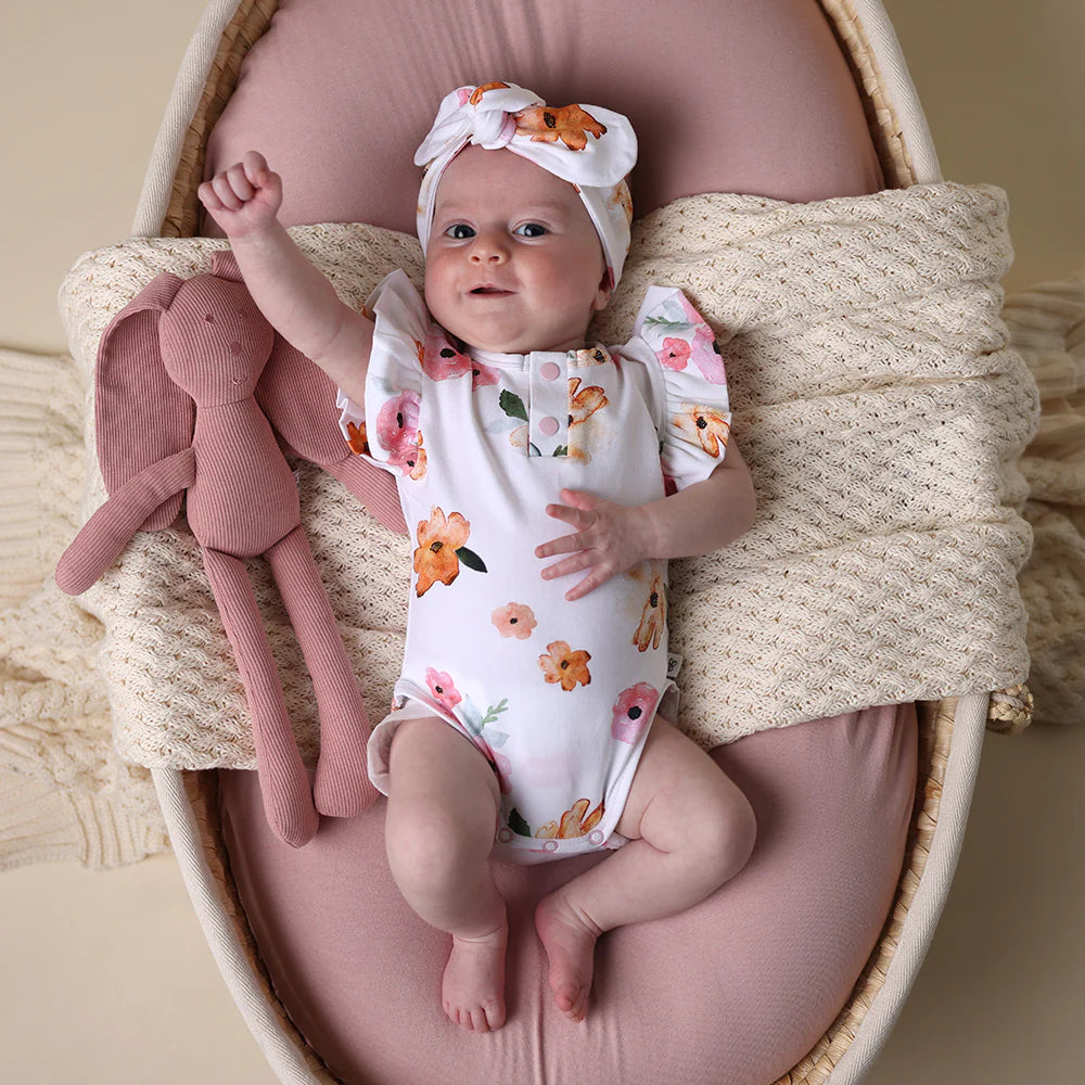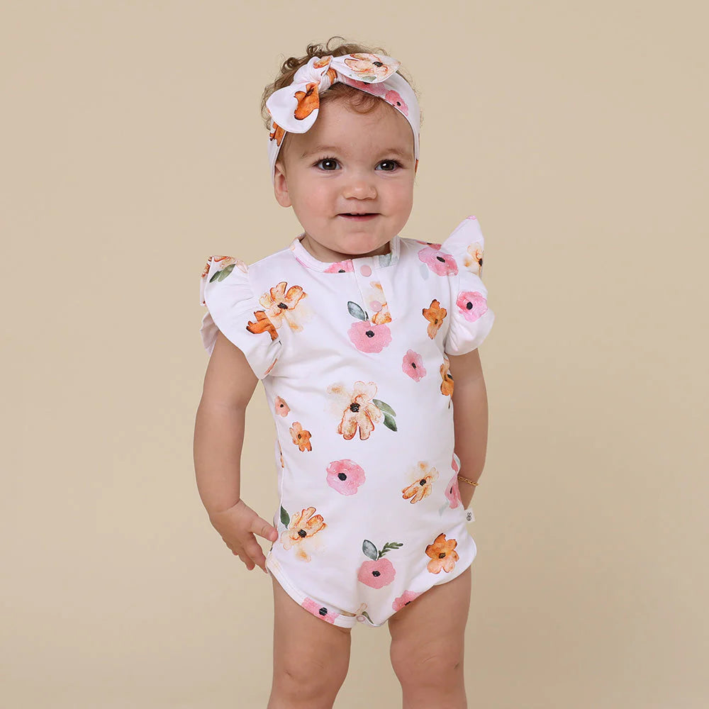 Soft and stretchy, our bodysuits are easy-care and coordinate well with our bloomers, pants and shorts. The bloomers have sweet frills to match the sleeves on this style.