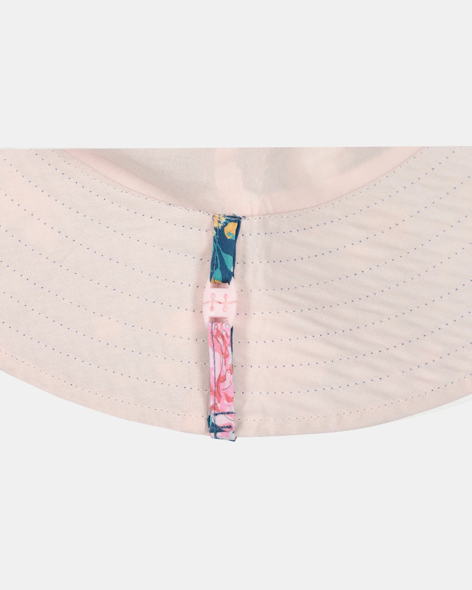 Toshi presents the classic Sunhat Waratah, ideal for children of all ages. The sunhat has a broad and well-structured brim. The UPF 50+ UV rating indicates maximum sun protection. The head tie with toggle creates adjustable sizing. A chin tie with toggle secures the hat for ease of wear. The security release clasp on the chin tie is designed to enhance wearer safety. The classic Toshi Sunhat is crafted from the finest quality 100% cotton and is fully lined for additional comfort.