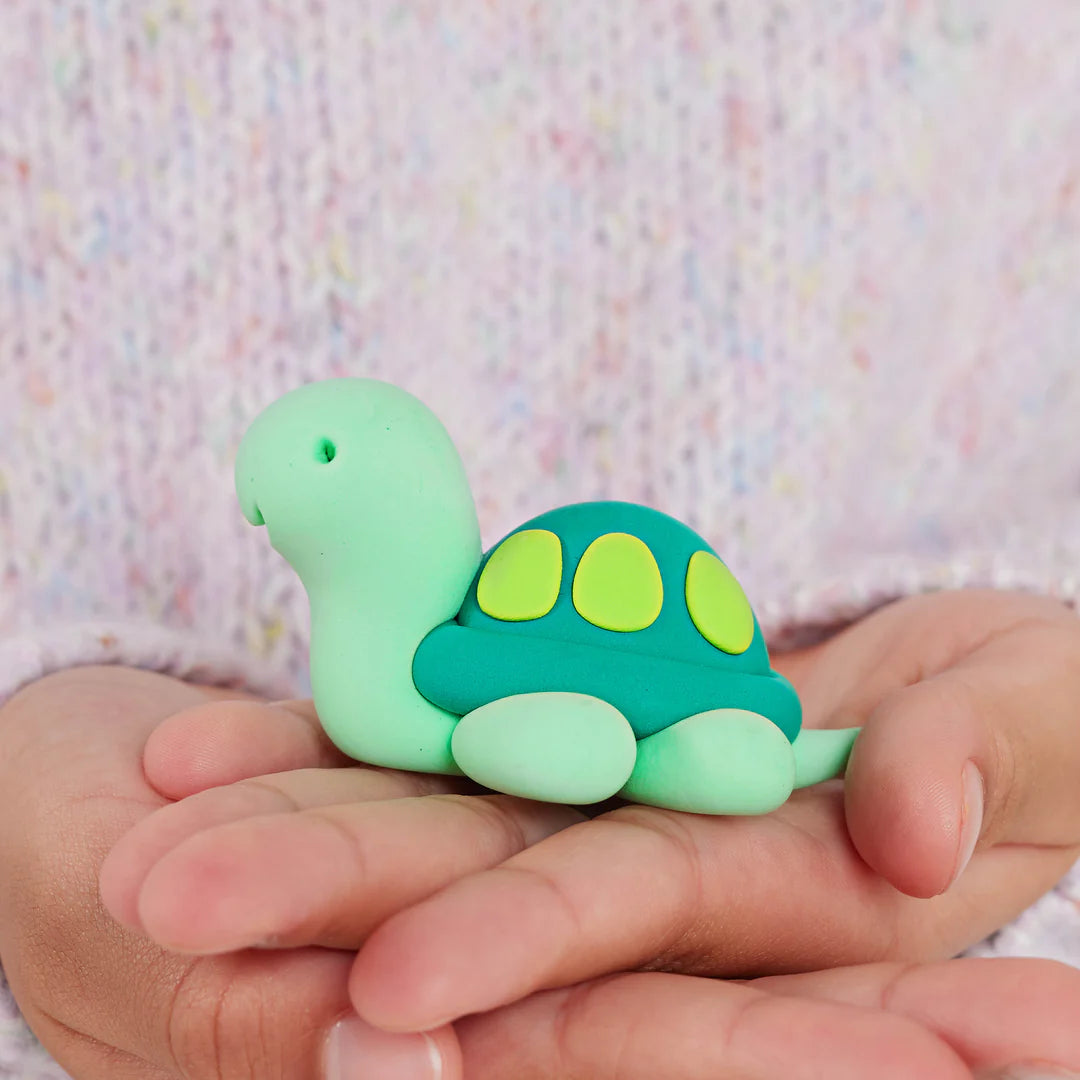 Little hands can bring big ideas to life with this soft, lightweight, air-drying clay. Super Clay – Jungle invites kids to roll, knead and sculpt vibrant shades of green clay to create two fun characters — frog and turtle — using step-by-step visual instructions, or to shape whatever their imagination comes up with. No oven needed — just air-dry for play or display.